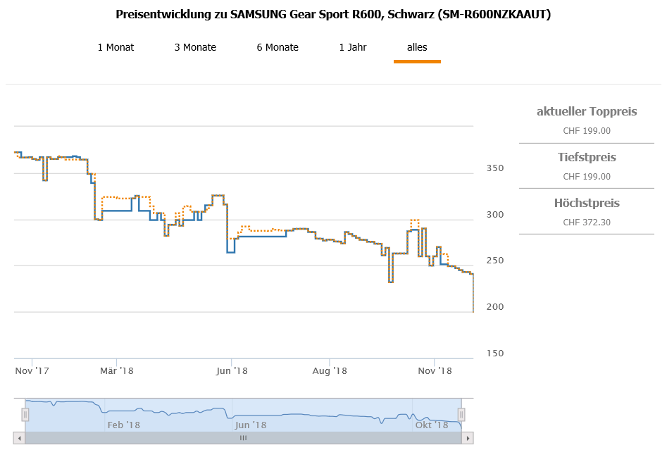 Bestprice mit Gutscheinabzug waren bislang 221.90 CHF, der zweitbeste Preis aktuell liegt bei 238.70 CHF.