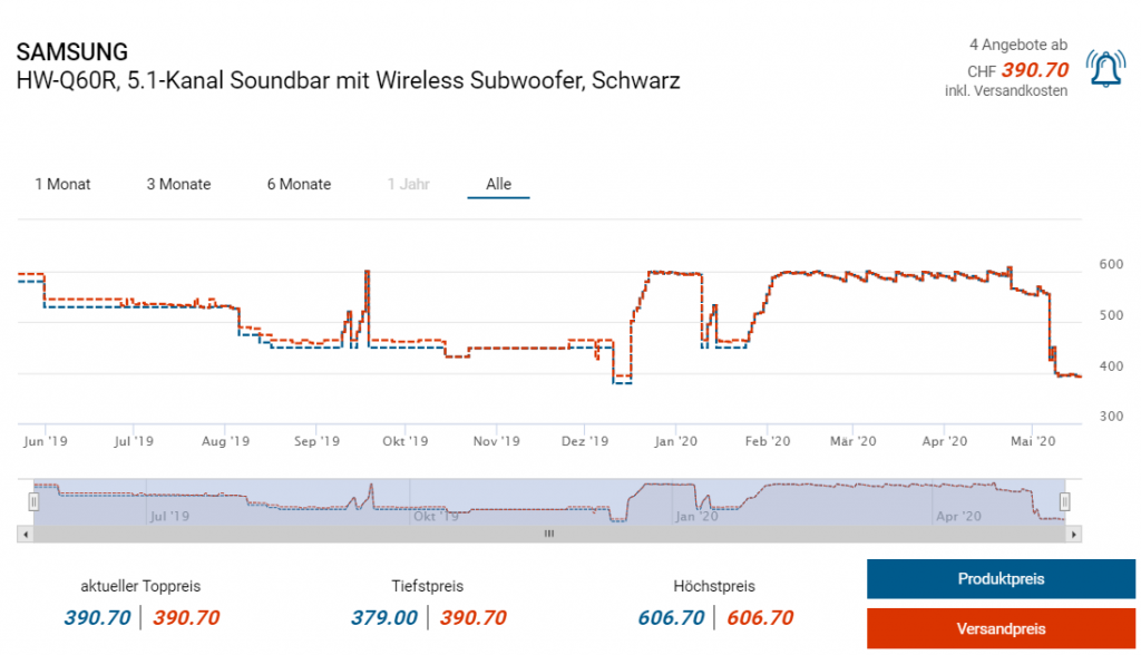 Bei fnac gibts diese Woche die 5.1.-Soundbar Samsung HW-Q60R zum noch akzeptablen Aktionspreis. Der Allzeitbestpreis liegt bei CHF 299.- in zwei Deals von Daydeal und Blickdeal.