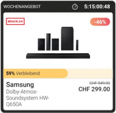 Neuer Bestpreis für das Dolby Atmos Soundsystem HW-Q650A von Samsung mit Soundbar, Subwoofer und Rear-Speakern.