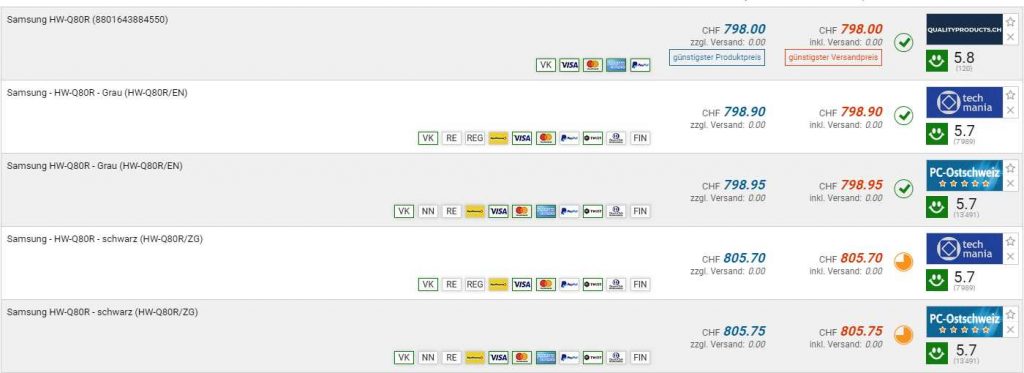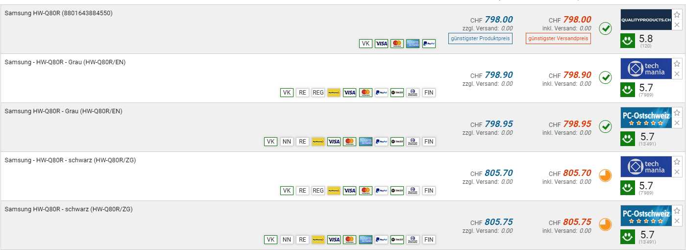 Bei BlickDeal gibt es die Samsung HW-Q80R Soundbar für den neuen Bestpreis von CHF 666.- Der vorherige Bestpreis beträgt CHF 788.75 und der zweitbeste Preis liegt bei CHF 798.-.
