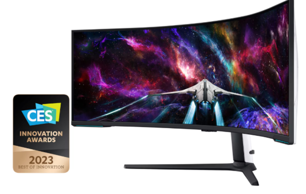 - 57″-Curved Display mit 240 Hz Refresh-Rate und einer Auflösung von 7680 x 2160 Pixeln (32:9)