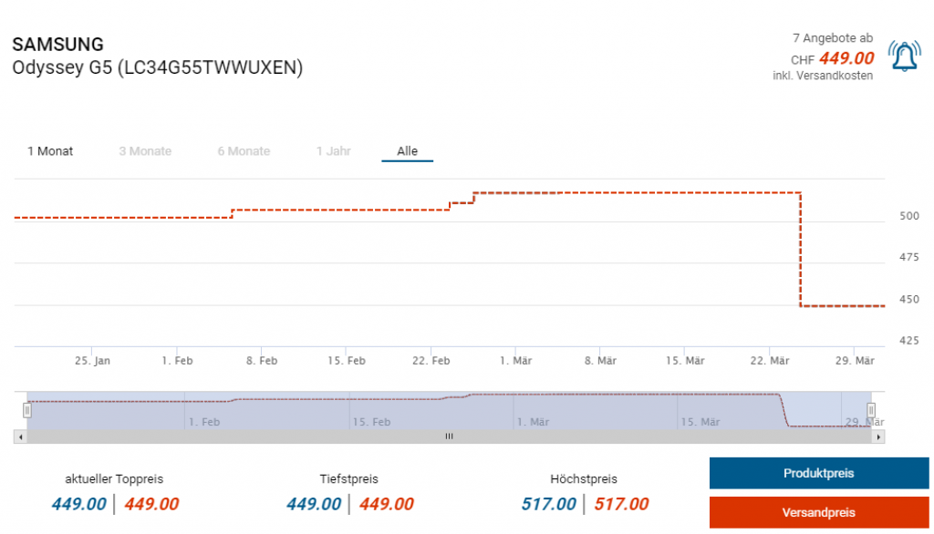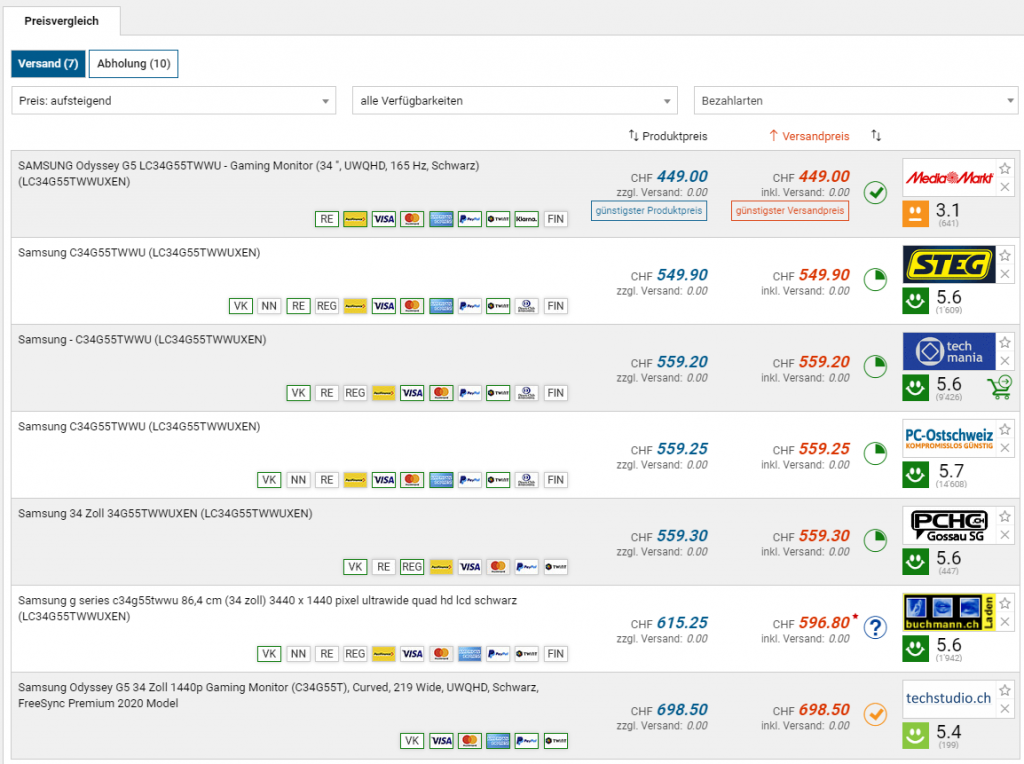 Bei Mediamarkt gibts derzeit den Gaming-Monitor SAMSUNG Odyssey G5 LC34G5 mit UWQHD-Auflösung und 165Hz Refreshrate zum neuen Bestpreis von 449 Franken. Scheinbar soll das Angebot schon eine Zeit lang gelten, es gab bisher aber keinen Beitrag dazu.