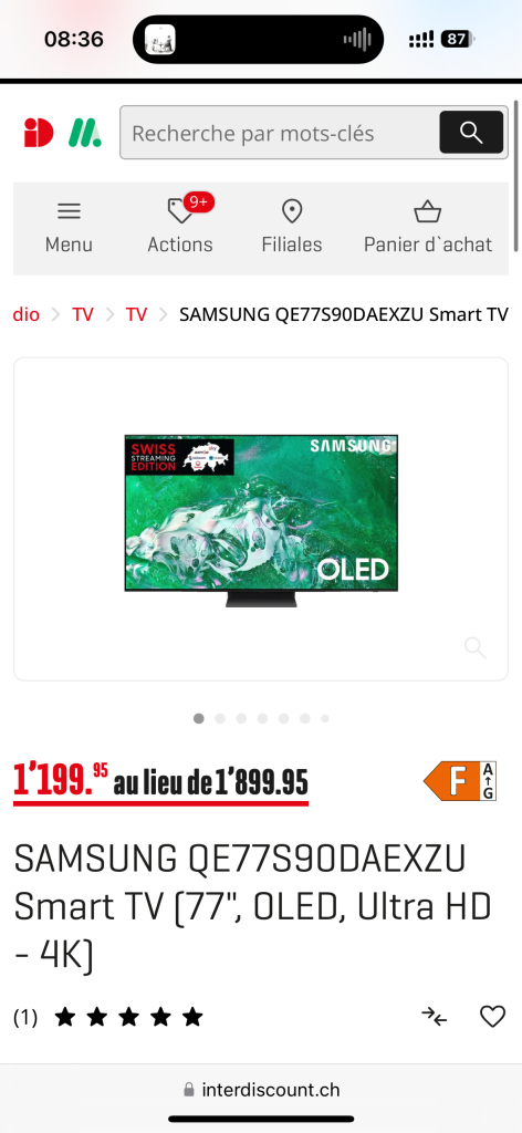 Angebot leider abgelaufen! Jeden Tag findet die Deal-Community neue Angebote. Sehen Sie sich jetzt die neuen Aktionen an... Zu den aktuellen Deals Home Entertainment & FotoInterdiscount Abgelaufen(lokal) SAMSUNG OLED 77 WELTBESTPREIS Geschrieben von Veyaim vor 1 Jahr Home Entertainment & Foto 26. November 2024 18 15 CHF 1199.- CHF 1999.- Zum Deal Abgelaufen SAMSUNG OLED 77 HAMMER DEAL Die besten Deals von heute anzeigen Veyaim 2,664 Vollständiges Profil anzeigen