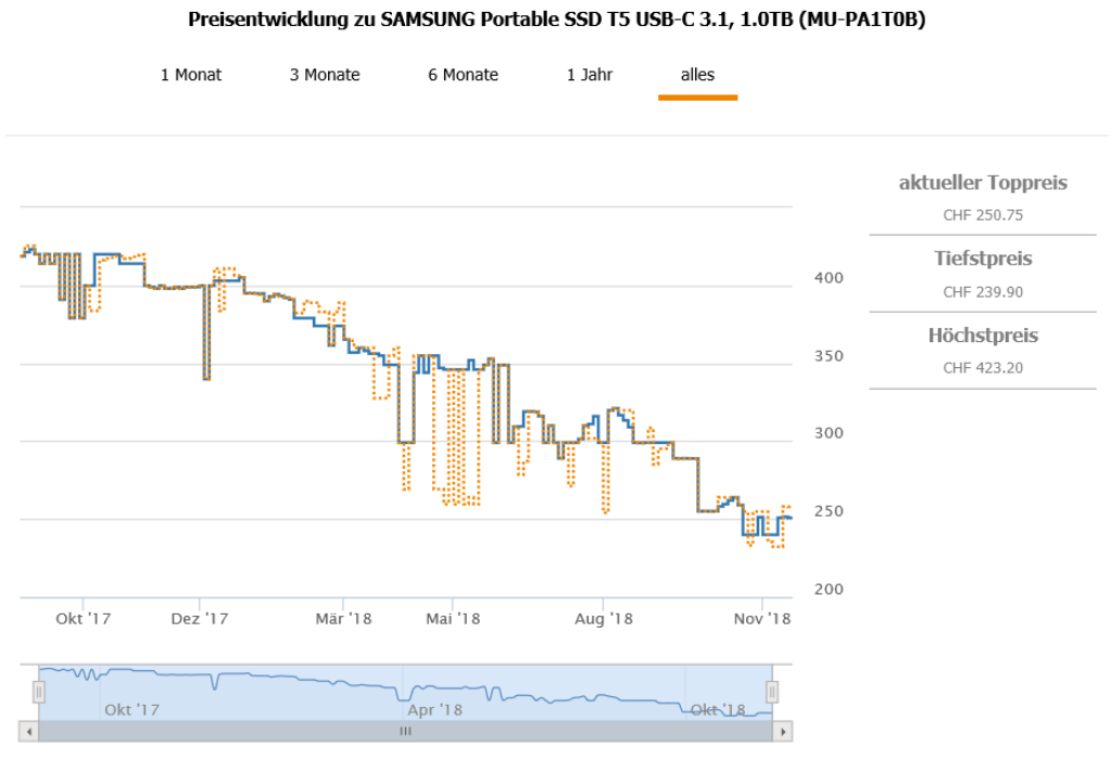 Samsung SSD 860er 1TB auch am günstigsten angeboten wird für nur 159 Franken,