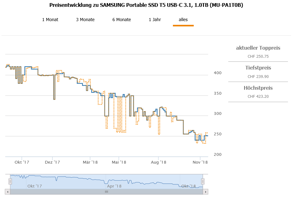 Bestprice bislang waren 232.20 CHF, der zweitbeste Preis aktuell liegt bei 257.90 254.- CHF.