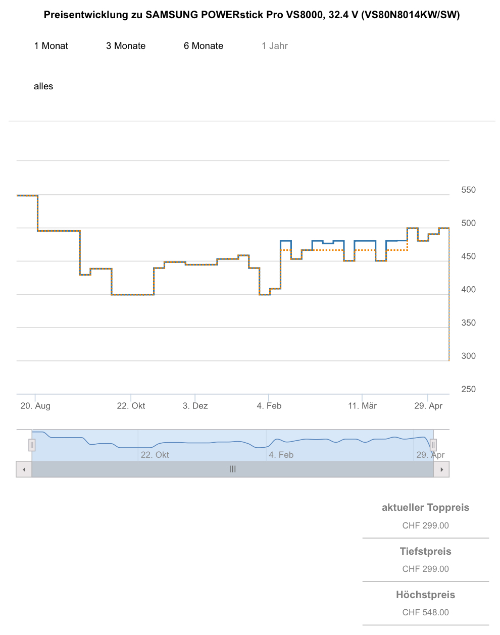 Bei melectronics gibt es aktuell den SAMSUNG POWERstick Pro VS8000 für 299.- CHF. Bei vorheriger Newsletteranmeldung kommt ihr auf einen Endpreis von 289.- CHF.