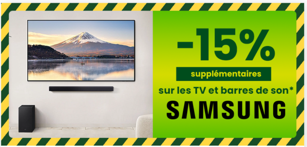 Conforama präsentiert die Samsung Promo mit einem zusätzlichen Rabatt von 15% auf ausgewählte Samsung Fernseher und Soundbars! Die südkoreanische Premium-Marke überzeugt mit innovativer Technologie, brillanter Bildqualität und erstklassigem Sound. Profitieren Sie von Doppelrabatten auf QLED, OLED und Crystal UHD Modelle!