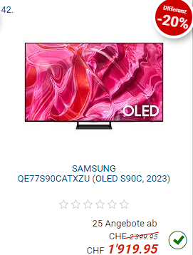 😁😁😅😅 Der Preis war auch gestern nicht bei 1.899 CHF. Es sei denn, ID gibt seit neuestem fast 50% Rabatt auf aktuelle 77 Zoll Oled TVS.