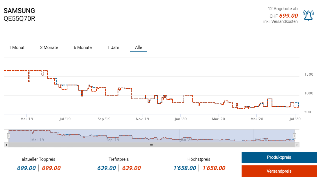 Bei Fust gibts derzeit den 55 Zoll grossen Fernseher QE55Q70r von Samsung in Aktion für 699 Franken. Mit dem bekannten 20 Franken Gutschein ergibt sich ein Endpreis von 679 Franken, was zwar kein Bestpreis ist (dieser lag bei etwa 542 Franken in diesem Deal hier) aber immerhin einigermassen günstiger als die Konkurrenz ist.