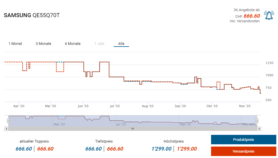 Bei Mediamarkt gibts derzeit den QLED-Fernseher QE55Q70T von Samsung zum neuen Bestpreis von CHF 666.60 anstatt CHF 767.-. Laut toppreise soll der bisherige Bestpreis zudem bei CHF 749.- gelegen haben.