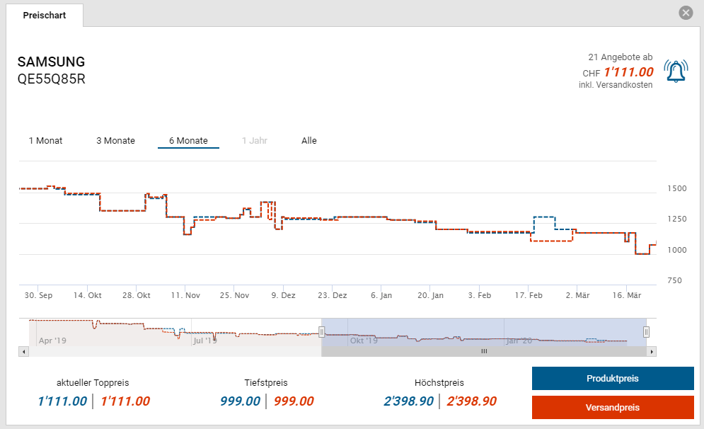 Bei Media Markt gibt es den SAMSUNG QE55Q85R Fernseher für den neuen Bestpreis von CHF 849.15. Der vorherige Bestpreis war CHF 999.-. Der zweitbeste Preis beträgt CHF 1111.-.