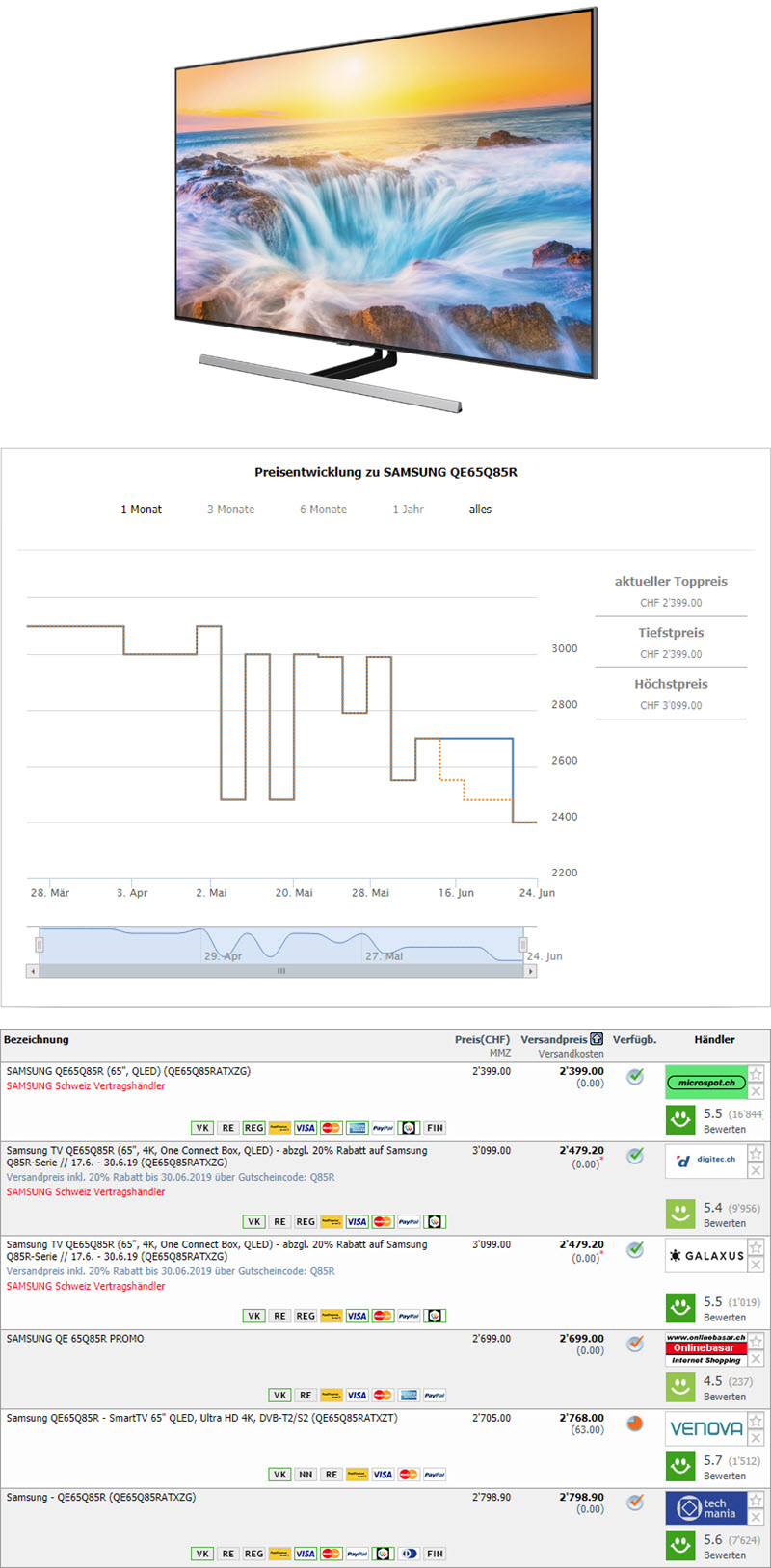 SAMSUNG QE65Q85R (65″, QLED) TV bei Microspot zum Bestpreis von CHF 1999.-