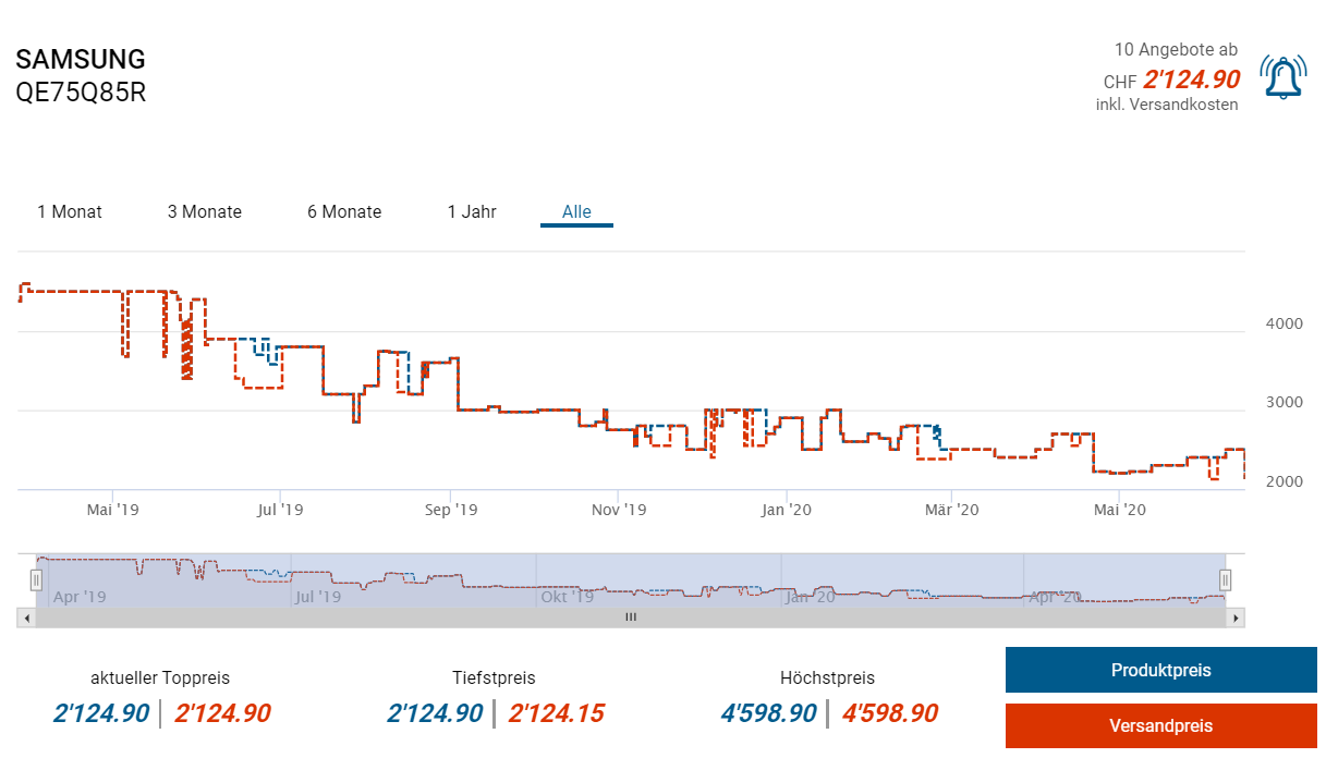 Bei Interdiscount gibts derzeit den 75 Zoll grossen Fernseher Q85R von Samsung in Aktion. So zahlt ihr mithilfe des 20 Franken Gutscheins am Schluss noch 2104.90 Franken. Laut toppreise und Preispirat-Suche handelt es sich hierbei um einen neuen Bestpreis.
