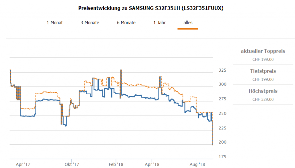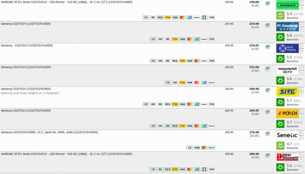 Bei microspot erhält man den Samsung S32F351H 32“ PC-Monitor für CHF 179.- wenn man den Gutscheincode HFWMSP20 beim Checkout eingibt. Zweitbester Preis in der Schweiz laut toppreise beträgt CHF 254.90, günstiger als für CHF 234.- gab’s den Monitor in der Schweiz noch nie.