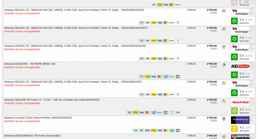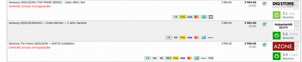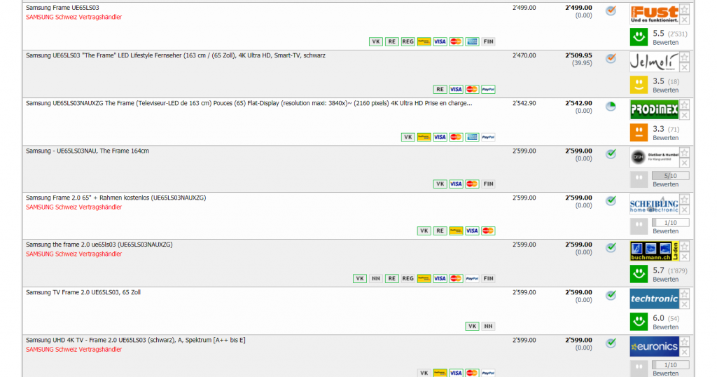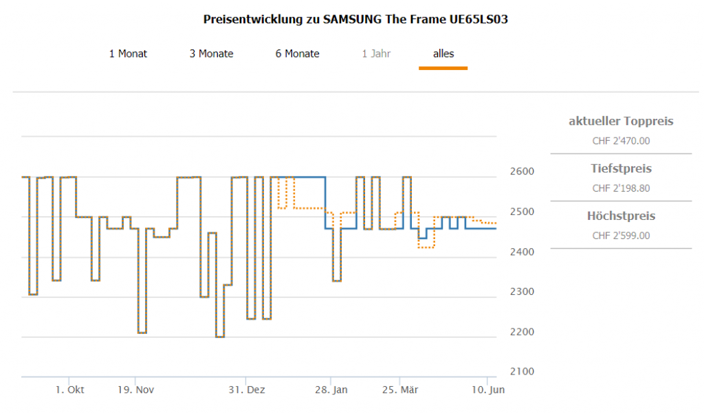 Zweitbester Preis laut toppreise beträgt momentan CHF 2484.- Bestpreis laut toppreise war bei CHF 2198.80