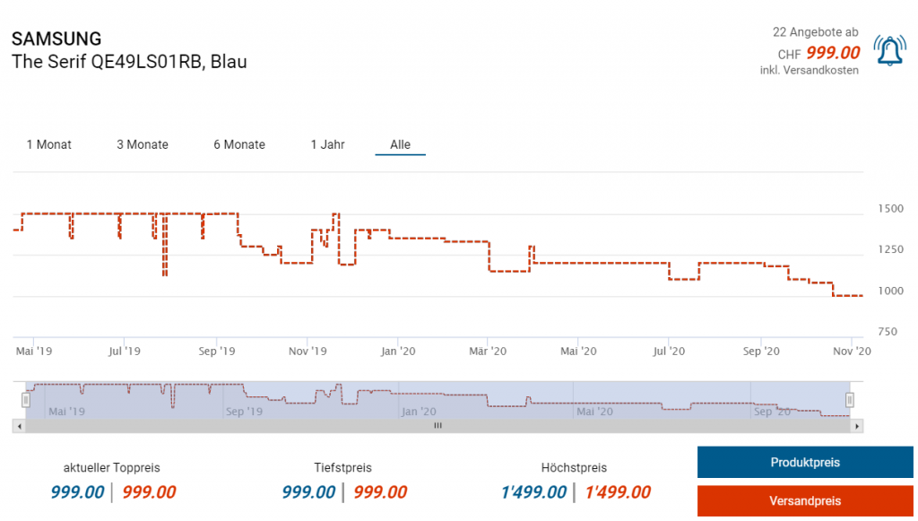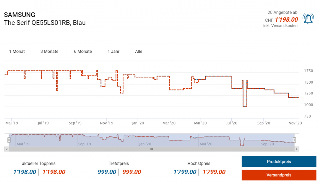 Bei Euronics gibts derzeit die beiden Fernseher QE49 sowie QE55LS01RBUXZG in Aktion für jeweils 999 resp. 1199 Franken. Desweiteren ist Euronics laut toppreise ein offizieller Samsung Vertragshändler, weshalb die Einkäufe dort wohl Cashback-berechtigt sind. Die Aktion gilt zudem nur noch bis heute Mitternacht. Die Vergleichspreise leigen sonst bei CHF 1079.- resp. CHF 1198.-