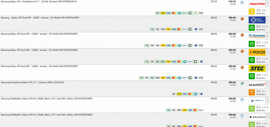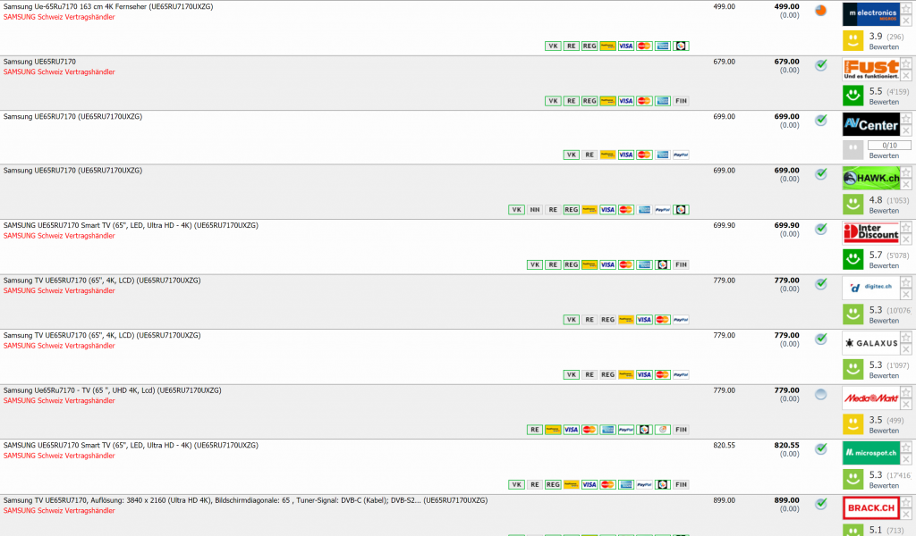 Zweitbester Preis bei CHF 679.- Bestpreis ebenfalls bei CHF 499.- jedoch ohne die „20% Rabatt“ zusätzlich durch Cumulus.