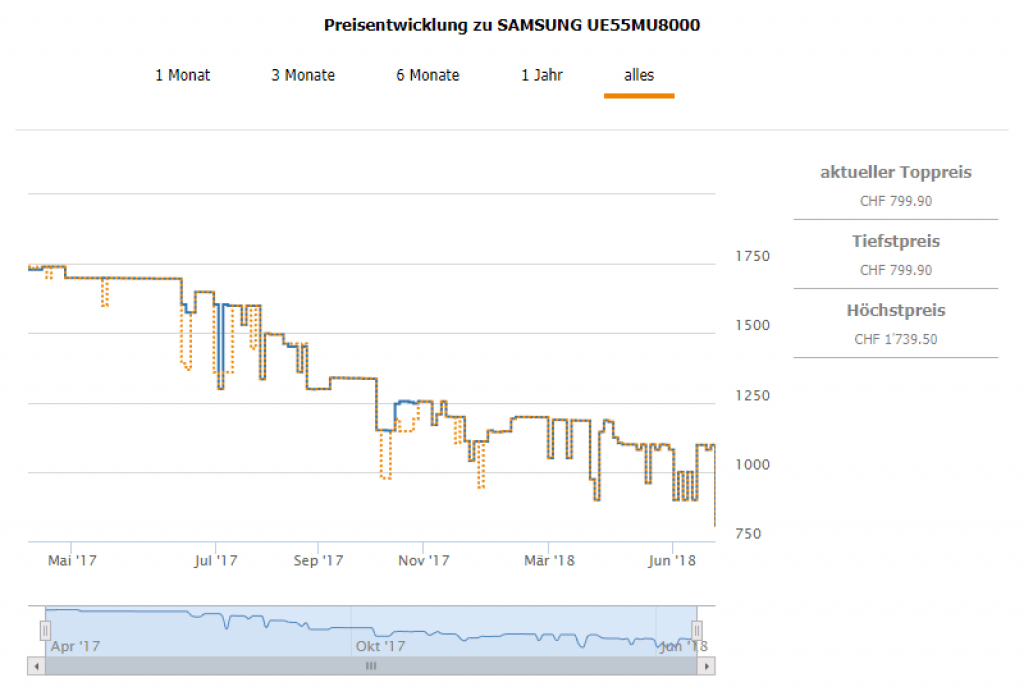 Mit Gutschein HFWID10 kommt man auf einen Endpreis von 789.90 CHF. Der zweitbeste Preis aktuell liegt bei 1094.75 bei Microspot.