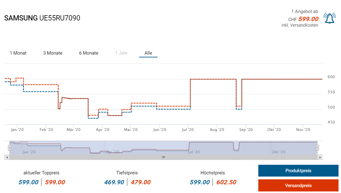 Bei Deindeal gibts zurzeit den 55 Zoll grossen Fernseher Samsung UE55RU7090 (letztes Produktjahr) zum Aktionspreis von 399 Franken. Dazu kommen allerdings 40 Franken Liefergebühren, die man leider nicht mit dem Gratis-Lieferung-Trick-Für-Neukunden umgehen kann, da dieser nur bis CHF 9.90 zieht… Dafür kann man den 20 Franken Gutschein von blackfridaydeals „einsetzen“. Der Vergleichspreis wäre genau genommen bei CHF 599.-, das neuere Modell 55TU7090 gibts allerdings schon für CHF 515.-