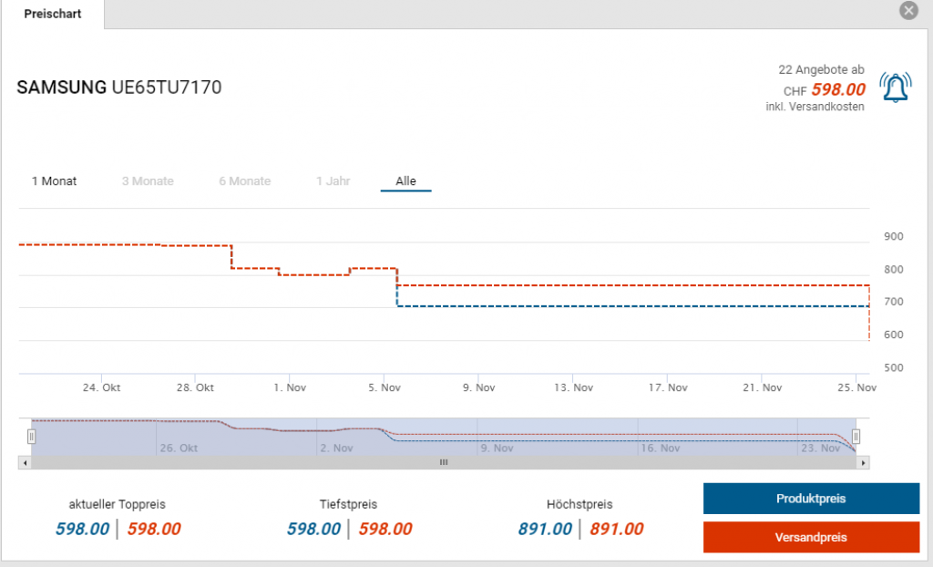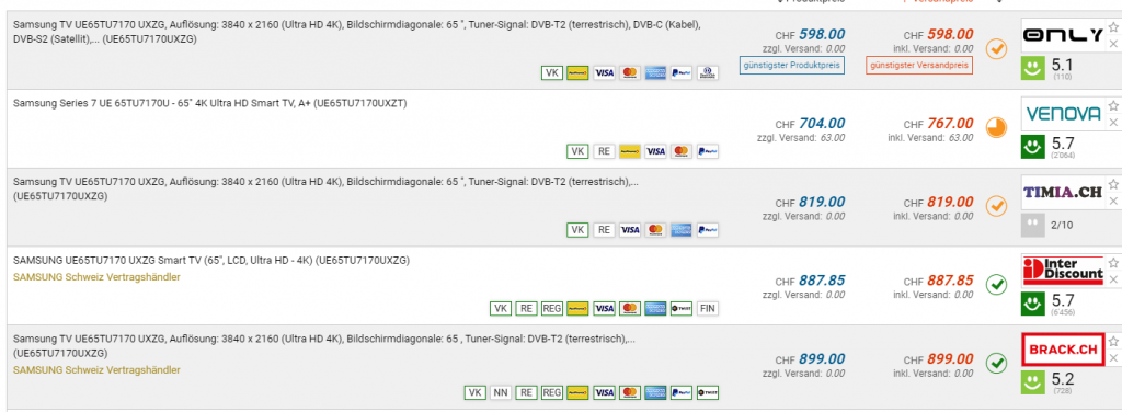 Bei Only gibt es den SAMSUNG UE65TU7170 Fernseher für den Bestpreis von CHF 589.-. Diesen Preis gab es schon einmal im Blickdeal. Der zweitbeste Preis beträgt CHF 767.-.