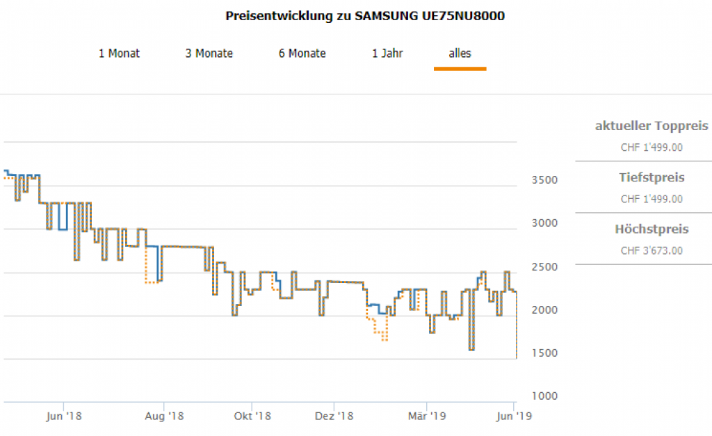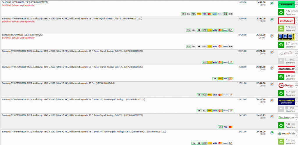 Bei microspot gibt’s aktuell den Samsung UE75NU8000 TV für nur CHF 1499.-. Das ist laut toppreise.ch ein neuer Bestpreis, und der Vergleichspreis von CHF 2299.- wird klar unterboten.