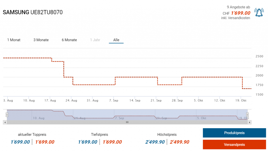 Bei microspot gibts derzeit den riesigen 82 Zoll Fernseher TU8070 von Samsung zum Aktionspreis von 1699 Franken. Laut toppreise liegt Interdiscount als zweitgünstigster Anbieter mit einem Angebot von CHF 1999.90 vor, zuletzt lag der Tiefstpreis bei CHF 1799.90. Mit dem bekannten 20 Franken Bon drückt man den Preis nochmal etwas nach unten.