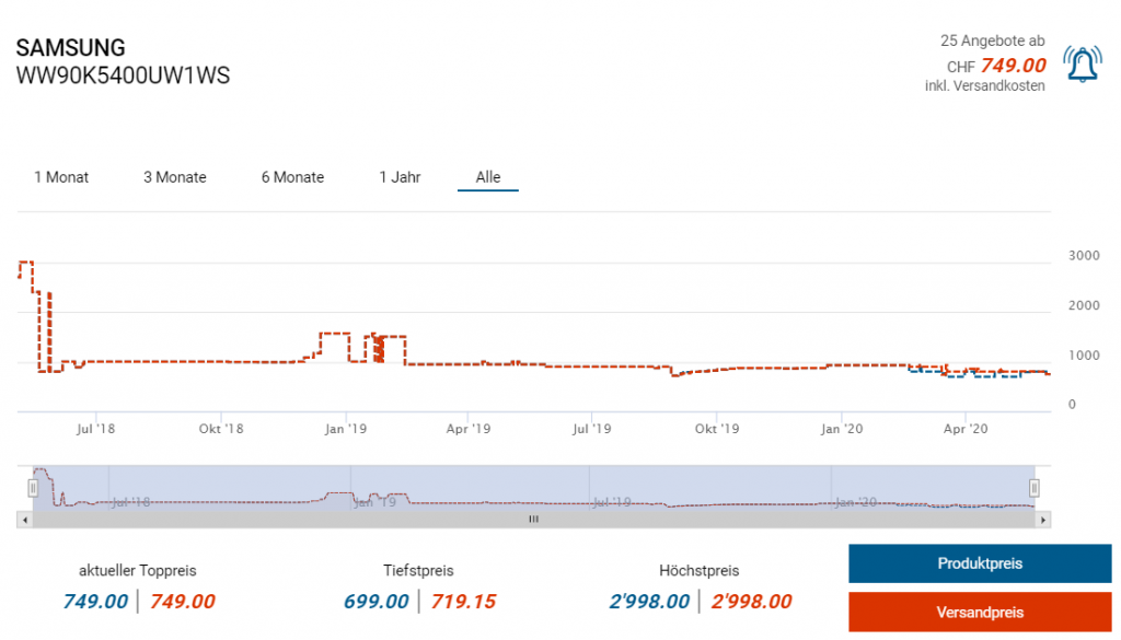 Im Blickdeal gibts diese Woche die Waschmaschine WW90K5400UW1WS von Samsung zum neuen Bestpreis von 649 Franken. Zuvor gabs das Gerät nie günstiger als für knapp 700 Franken.