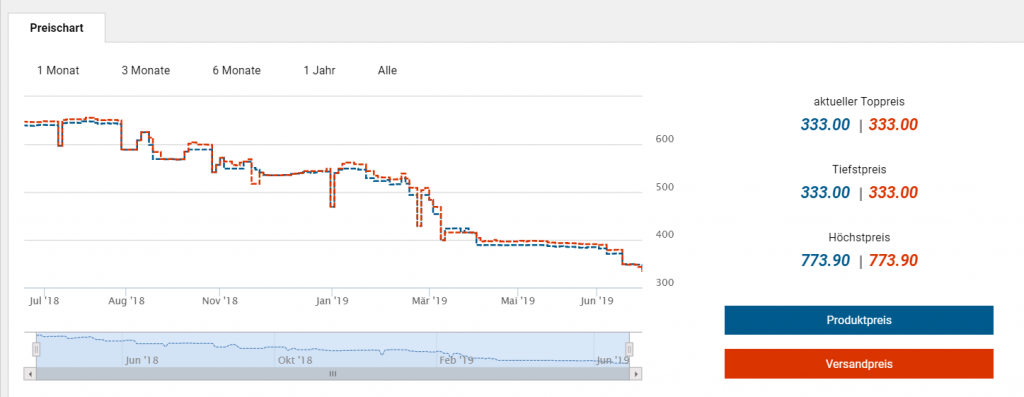 habe den preisverlauf vergessen einzufügen. bis anfang juni immer knapp 400 franken gekostet, finde ich also schon nicht schlecht, wenn auch kein hammer-angebot :)