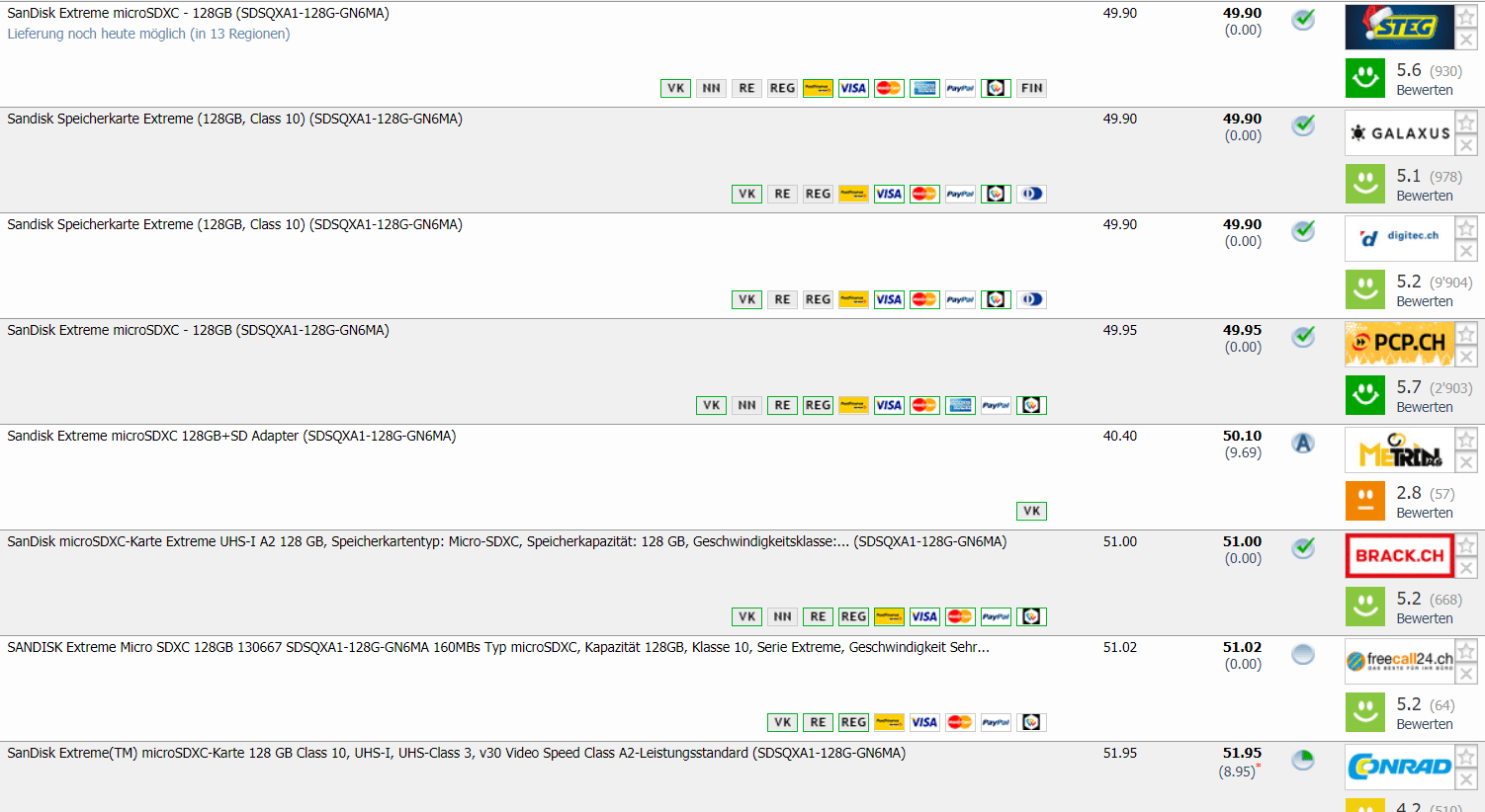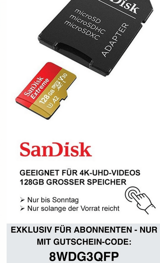 Nice price CHF 29 instead of CHF 49 for this fast MicroSD 128GB card.