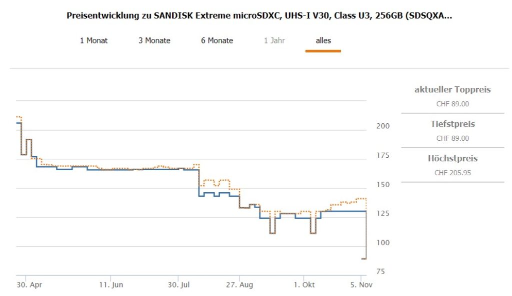 Heute gibt’s im microspot Tagesdeal die Sandisk microSDXC Karte mit 256GB für CHF 89.- Zweitbester Preis in der Schweiz beträgt CHF 140.90 Bestpreis bisher war bei CHF 111.-