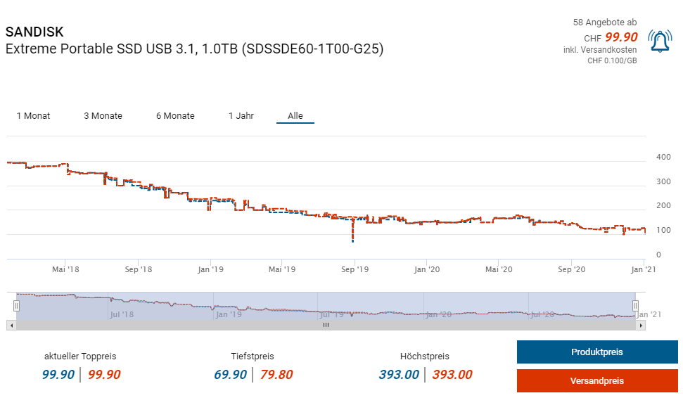 Bei melectronics gibts zurzeit die externe SSD Sandisk Extreme Portable mit 1TB Speicherkapazität zum neuen Bestpreis von knapp 90 Franken. Dazu müsst ihr euch bei melectronics zum Newsletter anmelden (Login erforderlich) und den 10 Franken Bon einlösen.
