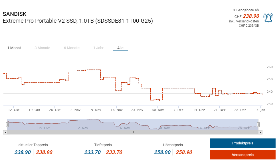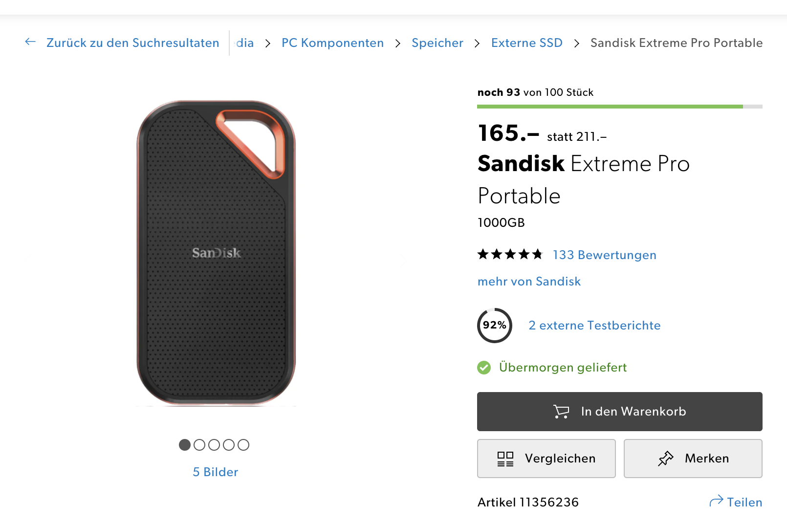 Vorsicht! Nicht zu verwechseln mit der "normalen" Sandisk Extreme Portable SSD, die aktuell für tw nur 89.- in den Schweizer Läden liegt. Für 1 TB. Auch Hammerpreis.