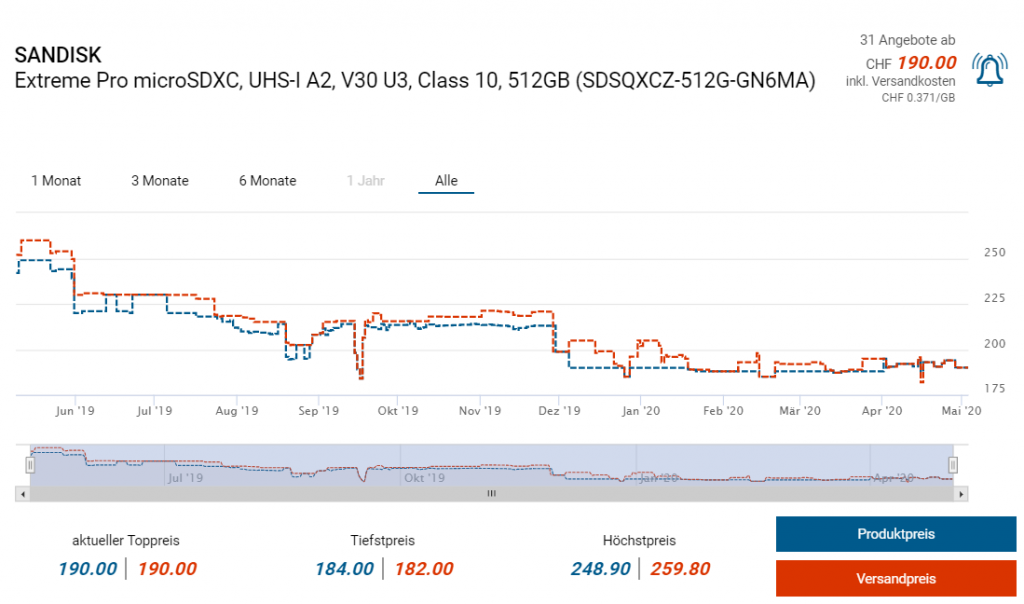 Bei Amazon gibts derzeit die 512GB grosse Sandisk Extreme Pro in Aktion. Es sind nur noch wenig Stück verfügbar weswegen man schnell zugreifen sollte. Mittlerweile wieder auf Lager 🙂