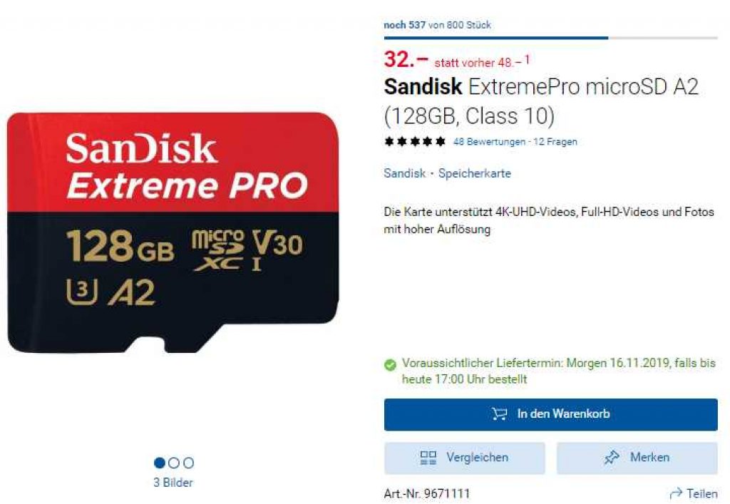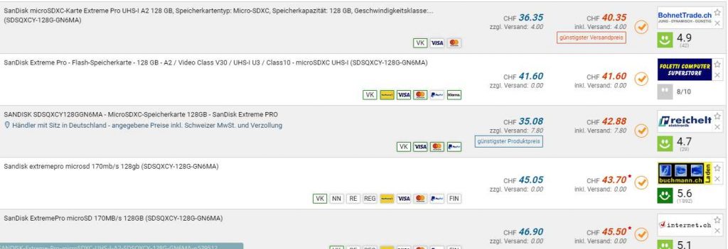 Bei digitec gibt es die Sandisk ExtremePro microSD 128gb für den neuen Bestpreis von CHF 32.-. Der vorherige Bestpreis war CHF 37.55. Der zweitbest Preis beträgt CHF 40.35.