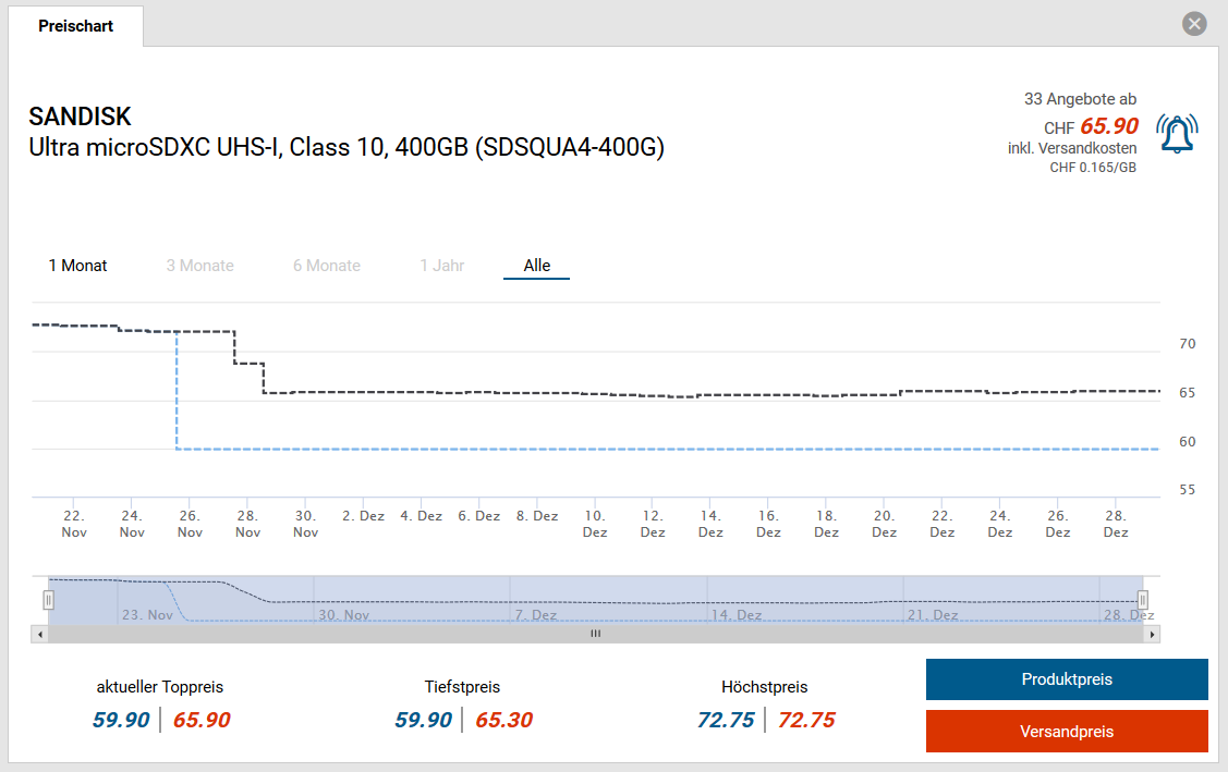 Bei Digitec kostet nur die SD-Karte derzeit 65.90 und bei Galaxus erhält man den Bleistift für über 3.-
