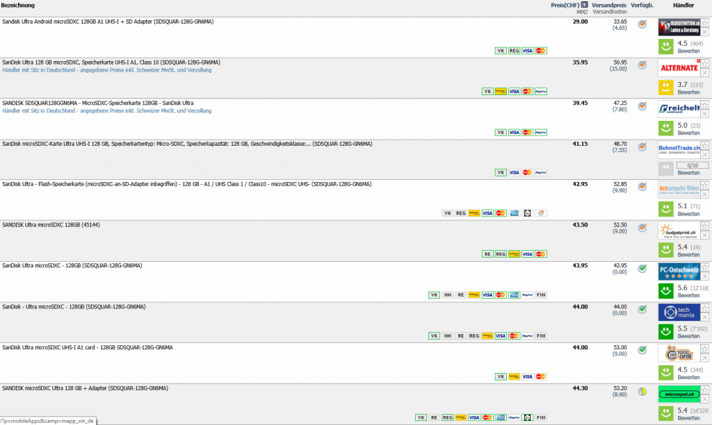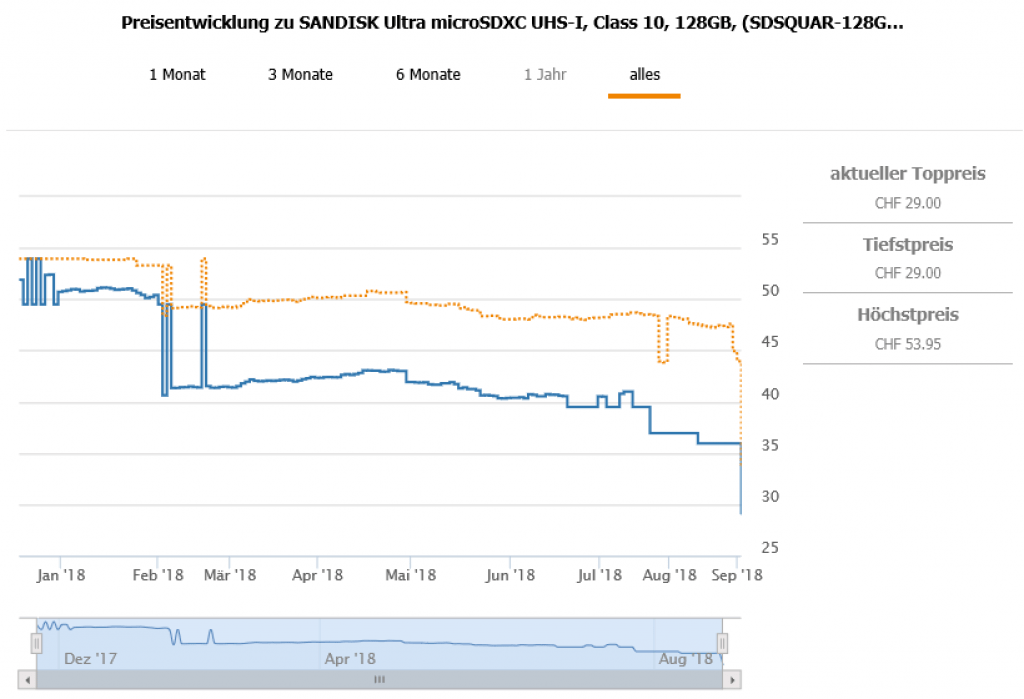 Bei high-definition gibt es aktuell die SANDISK Ultra microSDXC UHS-I, Class 10, 128GB für 29.- CHF / 33.65 CHF inkl. Versand.