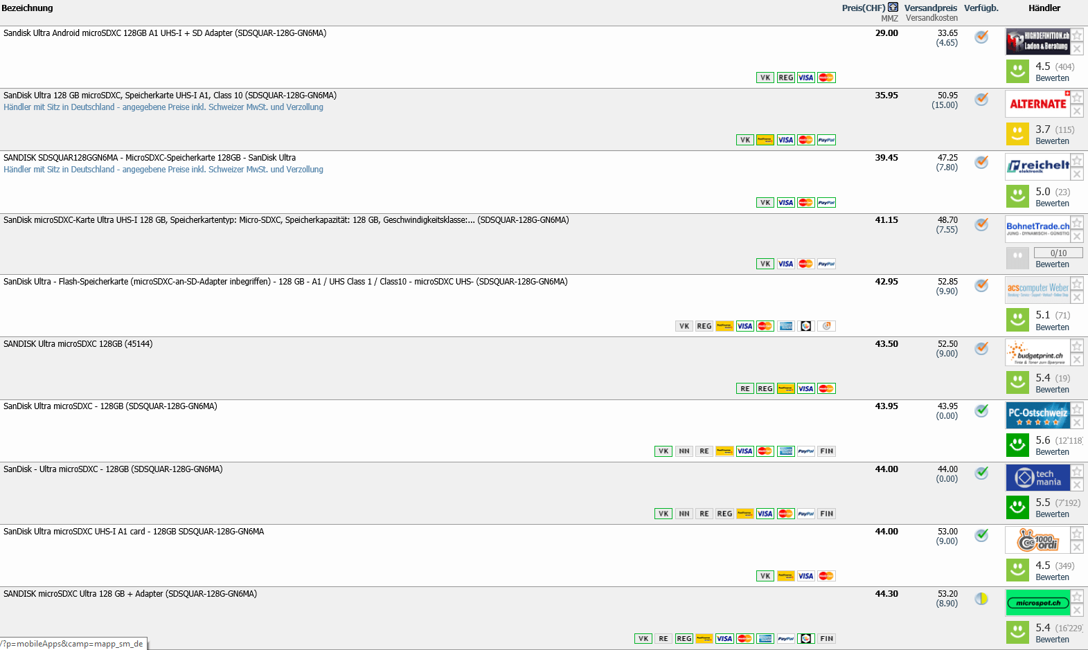 Bei high-definition gibt es aktuell die SANDISK Ultra microSDXC UHS-I, Class 10, 128GB für 29.- CHF / 33.65 CHF inkl. Versand.