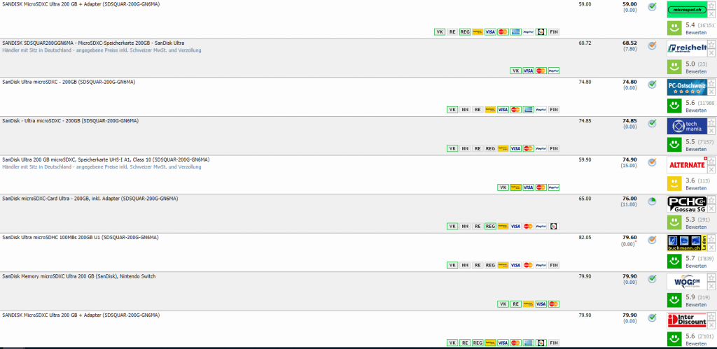 Wer es noch günstiger möchte, erhält die gleiche Karte bei Amazon für 49 EUR, nach Abzug der MWSt und Aufrechnung der Lieferung kommt man so auf den tollen Preis von CHF 49.- Einziger Nachteil hierbei ist, dass die Wahrnehmung der Garantie etwas schwieriger sein dürfte (ich habe damit keine Erfahrung).