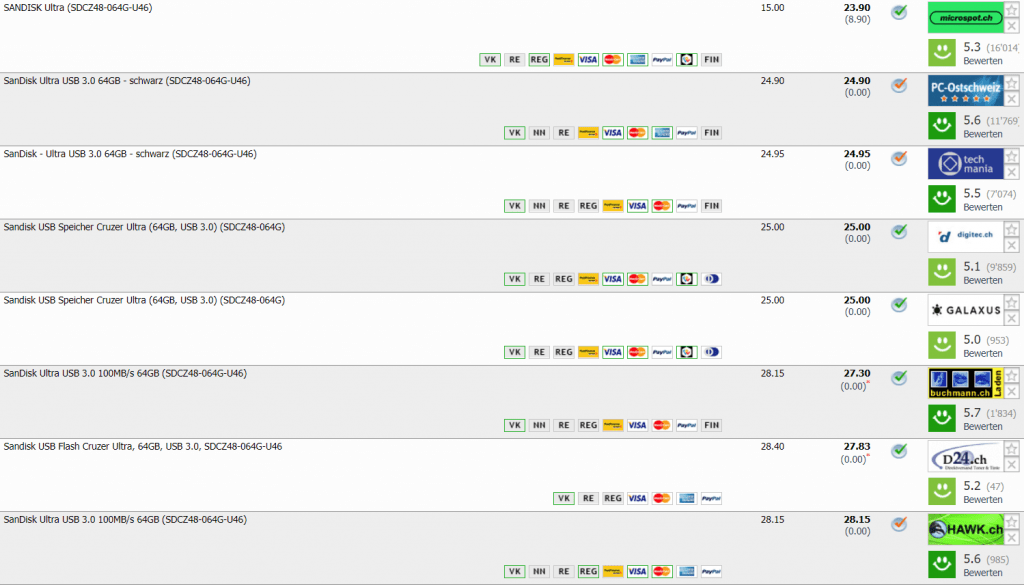 Bei microspot gibt’s gerade den Sandisk Ultra 3.0 Speicherstick mit 64 GB für 15.- wenn man das Teil bei einem Pickup Point abholt. Ansonsten werden zusätzlich CHF 8.90 Versand fällig. Auch mit den Versandkosten gibt’s den Stick momentan in der Schweiz nirgends günstiger. Da es recht viele Pick-up Points gibt, ist die Abholung bei microspot für viele kein grösseres Problem. Hier gibt’s die Pickup Station Übersicht von microspot.