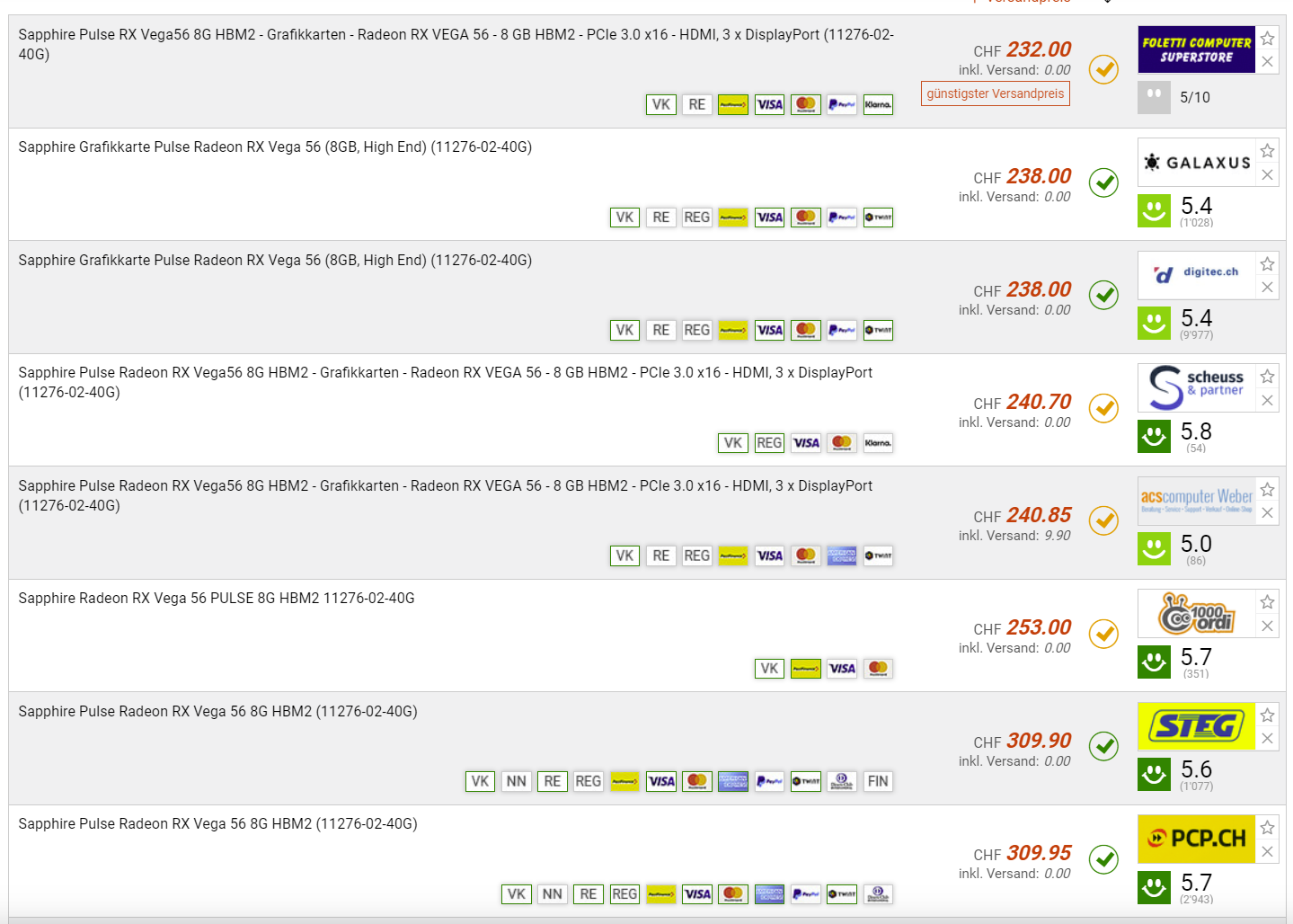 Solide Vega 56-Karte zu einem guten Preis derzeit bei Digitec ab Lager verfügbar.