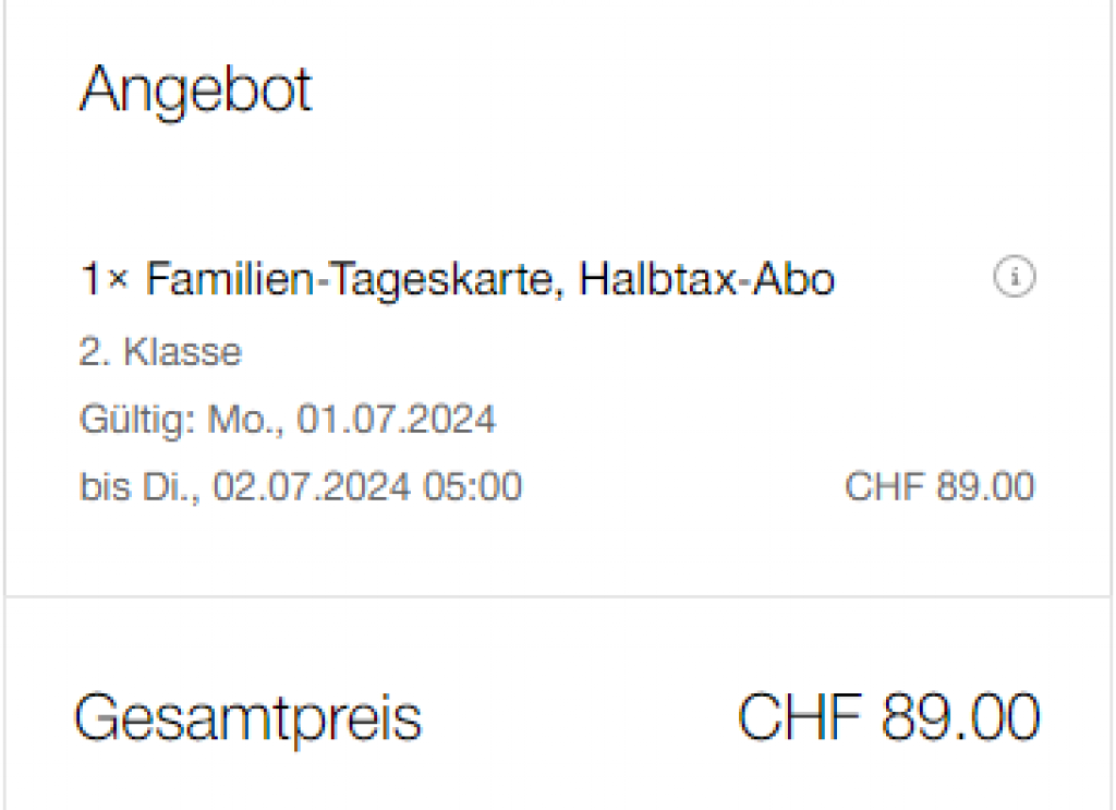- Gültig für maximal 6 Personen, die gemeinsam reisen. Davon dürfen bis zu 2 Personen 16 Jahre oder älter sein. Eine Person muss zudem ein Halbtax besitzen.