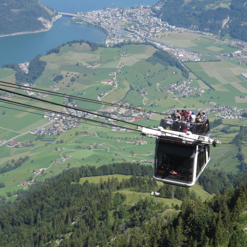 Geniessen Sie die Fahrt mit der weltersten CabriO-Luftseilbahn auf den Aussichtsgipfel Stanserhorn.