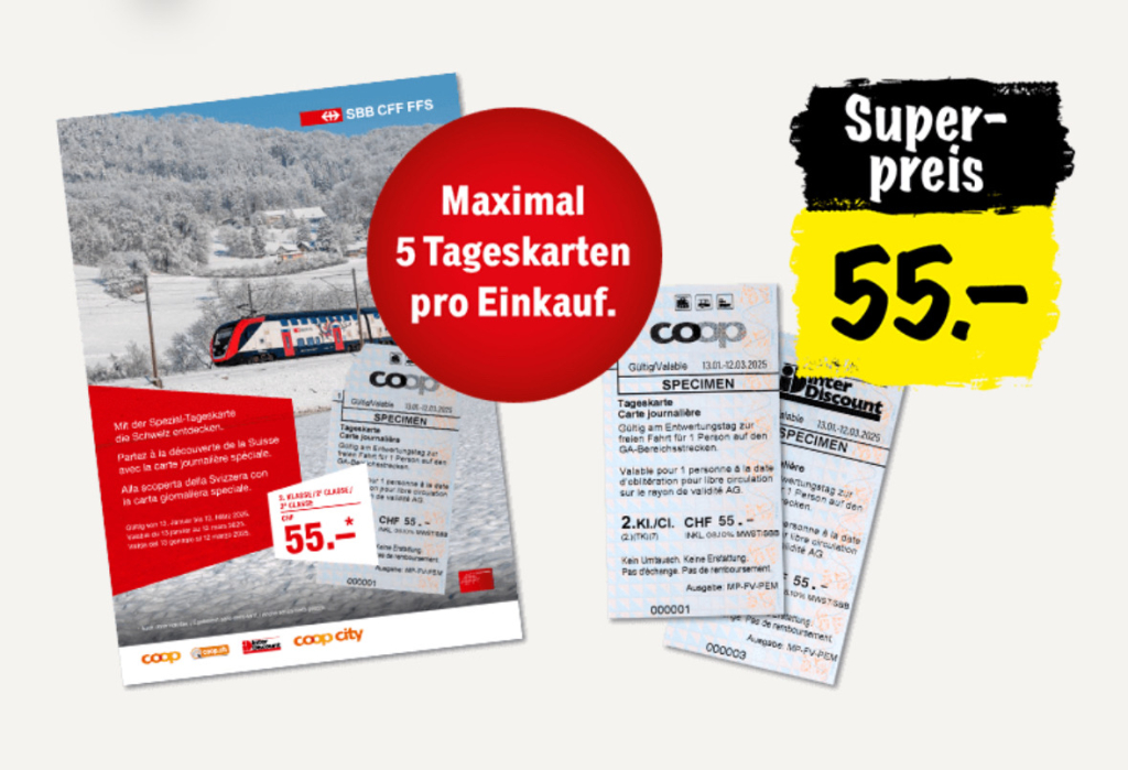 Zwischen dem 13. Januar und 12. März 2025 können Sie von einem Halbtax-Gutschein im Wert von CHF 30.– profitieren. Das Angebot ist nur gültig für Neukunden.*