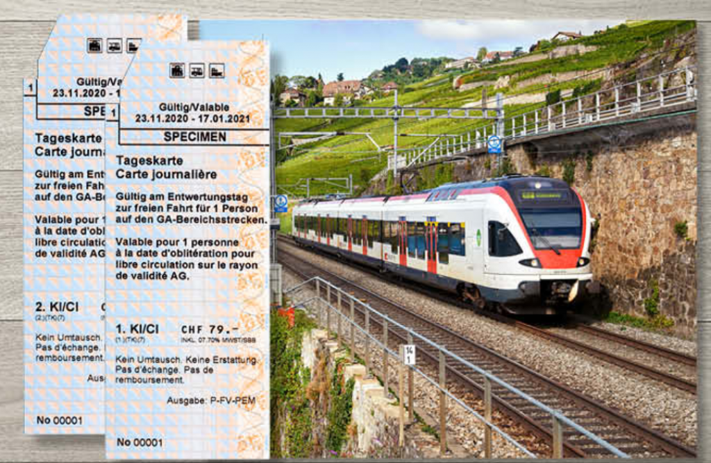 Mit der ermässigten Tageskarte reisen Sie einen ganzen Tag lang kreuz und quer durchs Land. Dabei entdecken Sie die schönsten Freizeitorte mit Zug, Postauto, Schiff, Tram und Bus. Sie erhalten die ermässigte Tageskarte exklusiv vom 23. November bis 24. Dezember 2020 in limitierter Auflage.