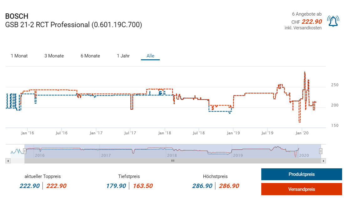 Bei amazon.de gibts derzeit die Schlagbohrmaschine Bosch Professional GSB 21-2 RCT + ein 8-teiliges Holzbohrerset von Robust Line im Wert von ca. 27 Franken (laut toppreise) gratis dazu. Dies sollte neuer Bestpreis sein, wenn man toppreise Glauben schenken kann.