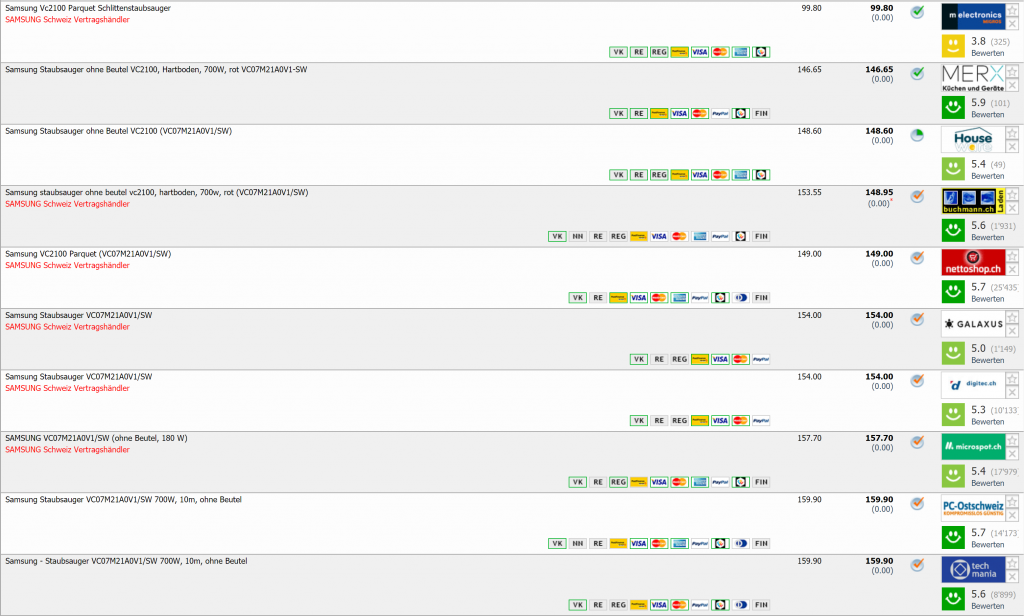 Mit Kombination des Newsletter-Gutscheins erhält man bei melectronics im Moment den Schlittenstaubsauger Samsung VC2100 Parquet für CHF 89.90 Zweitbester Preis im Moment beträgt CHF 146.65