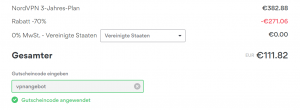 Vor der Bezahlung gebt den folgenden Gutschein ein: vpnangebot