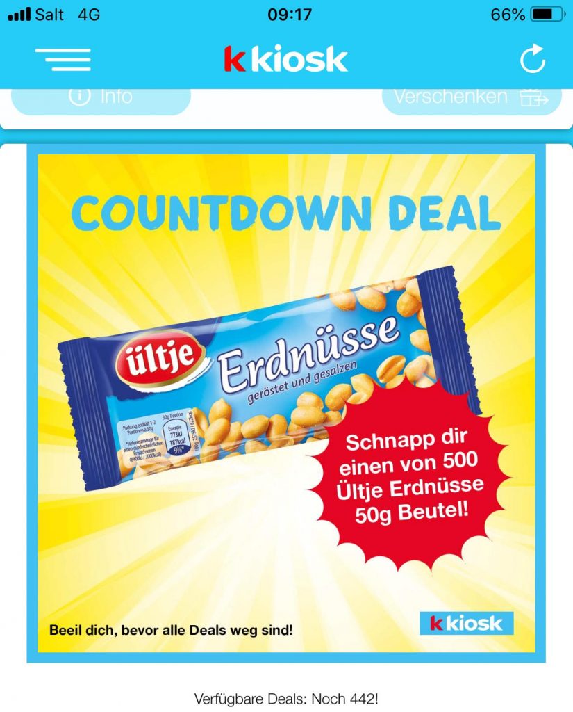 kkiosk verteilt über ihre kkiosk App zur Zeit gratis 500x 50g Ernüsse.