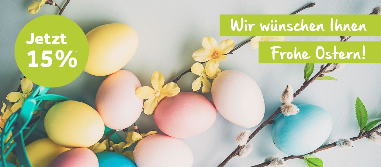 Mit 15%* auf unser komplettes Sortiment – inklusive Gartenmöbel & Boutique – feiern wir das Osterfest mit Ihnen.