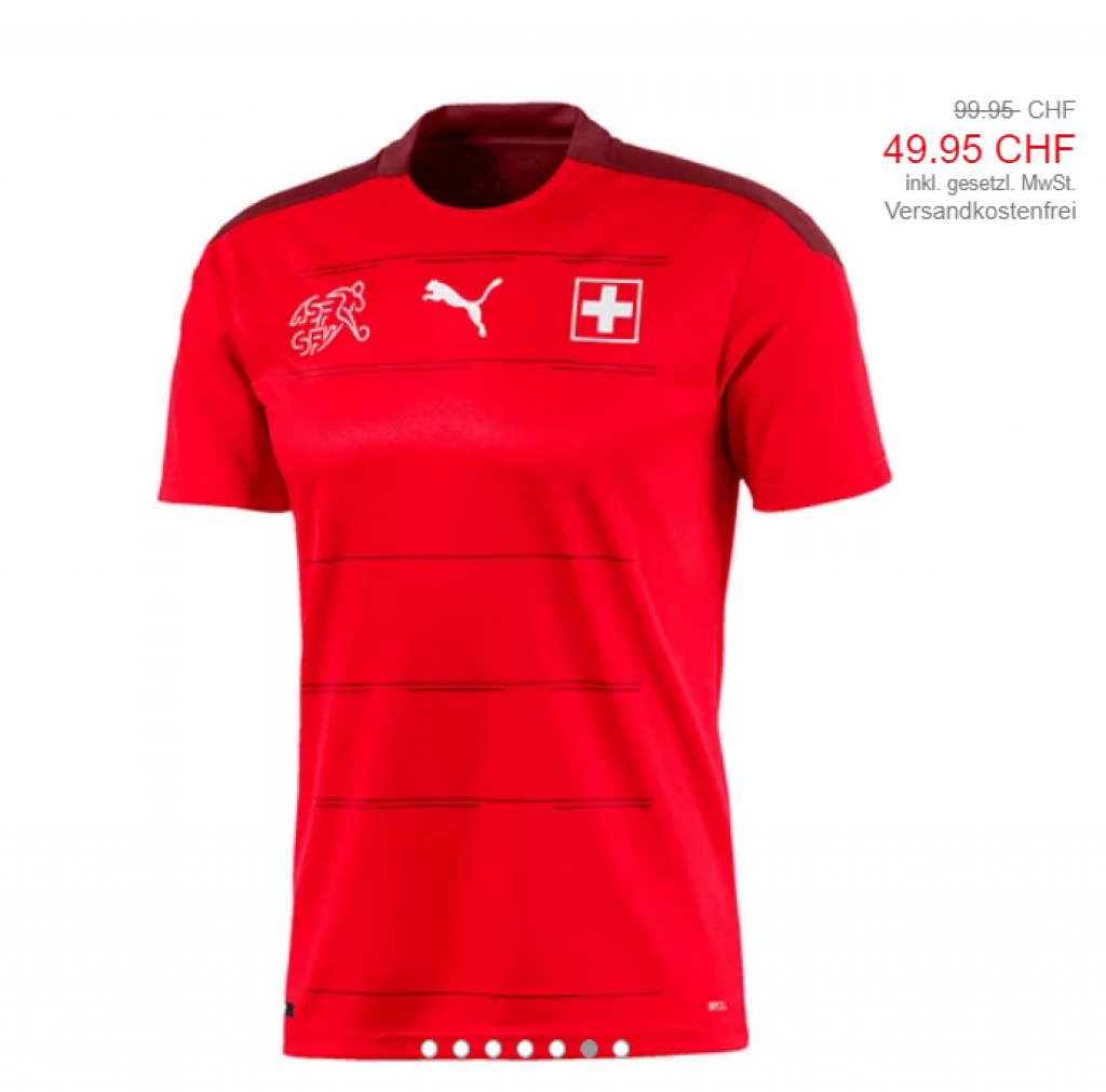 Bei Dosenbach gibt’s das Schweiz Home Replica Fussballtrikot für Erwachsene in den Grössen M-XL für CHF 49.95 inklusive Versand. Ansonsten ab CHF 63.95 erhältlich.
